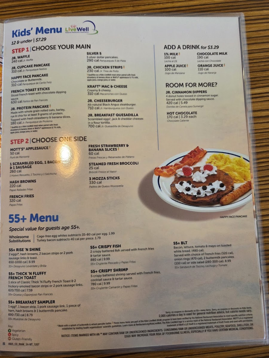 IHOP brings classic American breakfast favorites to the table with a warm, family-friendly touch. Their menu is a celebration of hearty, comforting dishes—from fluffy buttermilk pancakes to golden hash browns and perfectly cooked eggs. Standout options include the Breakfast Sampler, combining eggs, bacon, sausage, ham, and pancakes, delivering a well-rounded start to the day. For those seeking a robust meal, the Sirloin Steak Tips & Eggs serve tender steak with grilled onions and mushrooms alongside traditional sides.